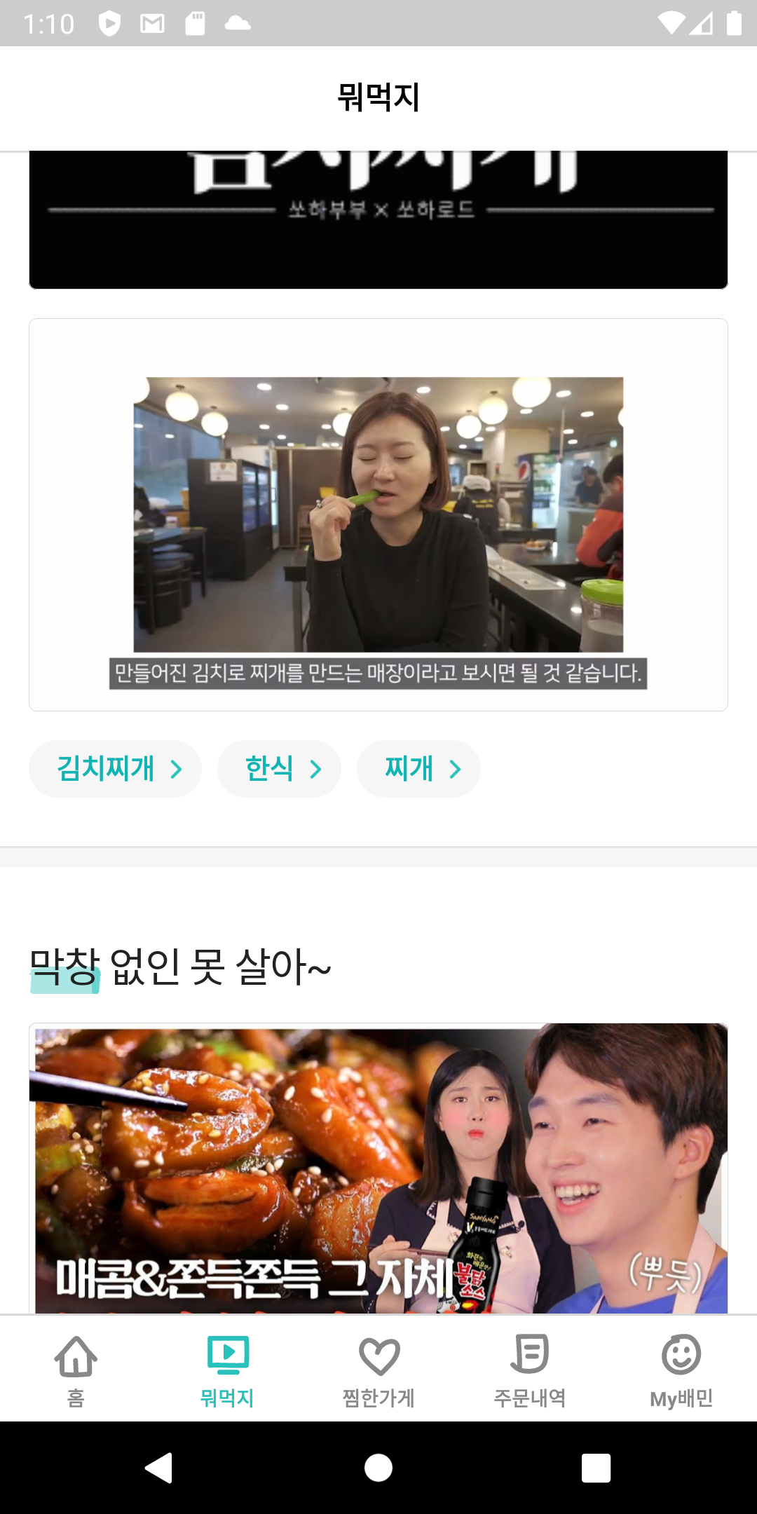 먼저, 구현하고자하는 모습은 배달의민족 '뭐먹지' 탭에서 확인할 수 있다.